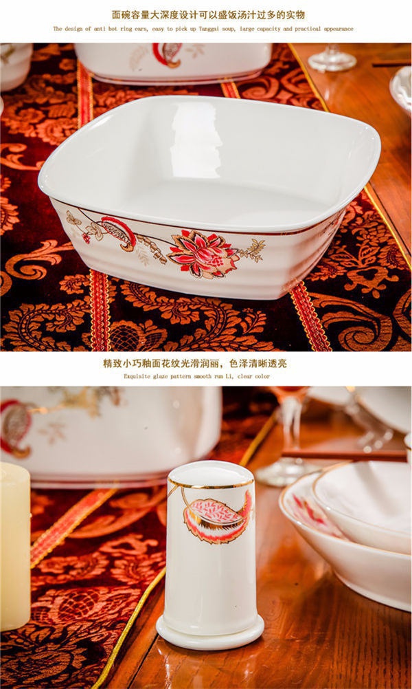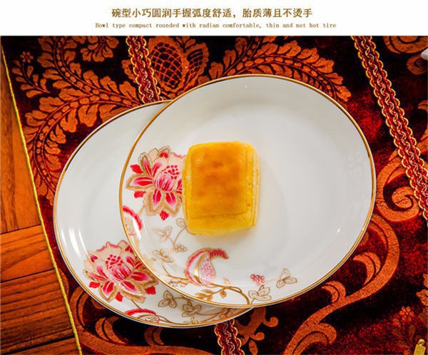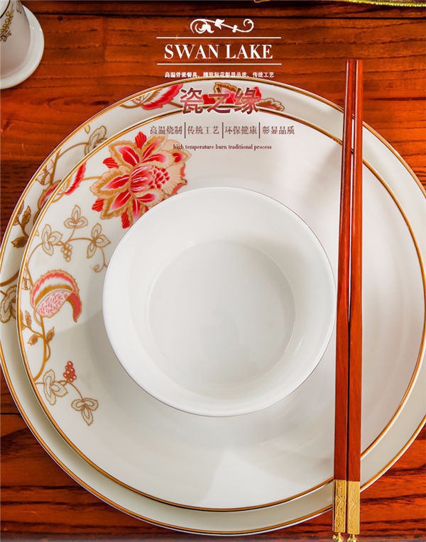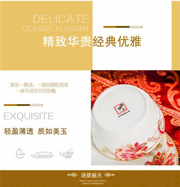 65頭醉花吟,一個(gè)湯煲,一個(gè)魚(yú)盤(pán),一個(gè)大飯勺,一個(gè)大湯碗,一個(gè)牙簽筒,六個(gè)面碗,四個(gè)三寸碟,十個(gè)盤(pán)子,十個(gè)4.5寸飯碗,十個(gè)五寸骨碟,十個(gè)調(diào)羹,十個(gè)筷子架。