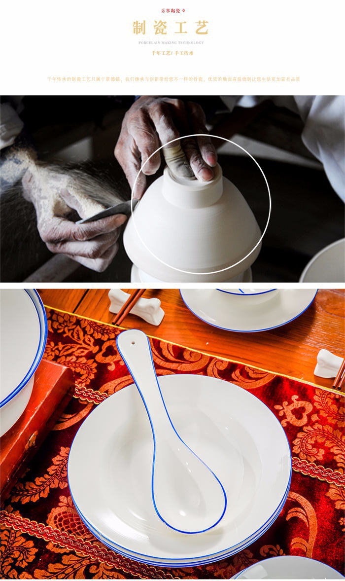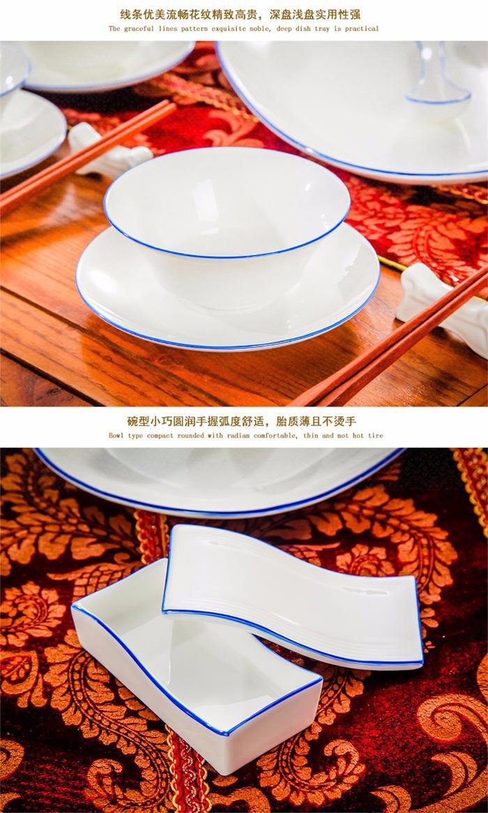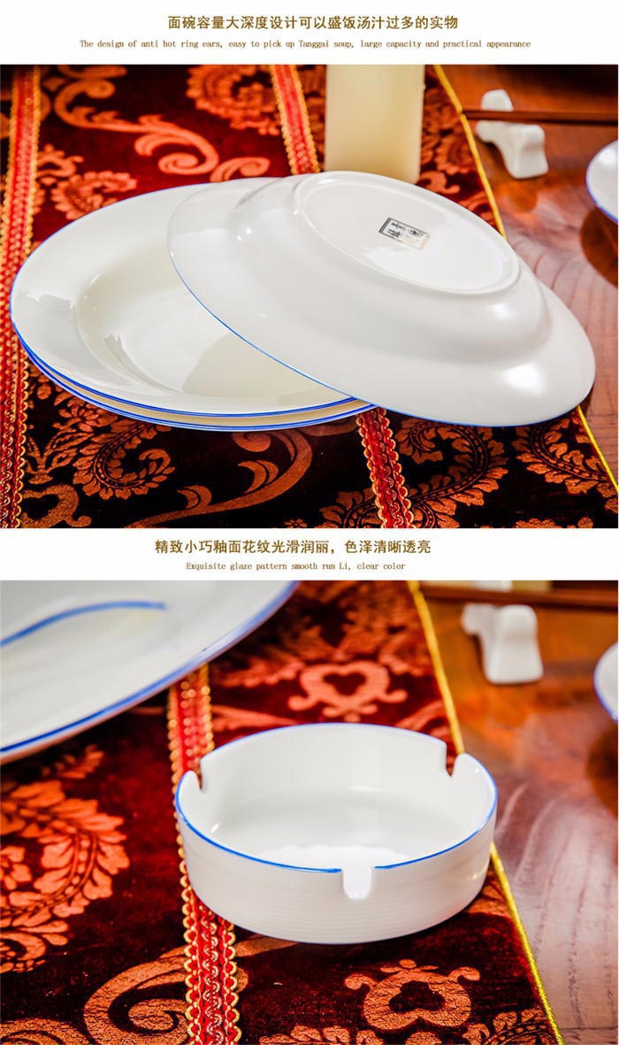 58頭蘭邊螺旋,一個(gè)湯煲,一個(gè)魚(yú)盤(pán),一個(gè)十寸圓盤(pán),一個(gè)飯勺,一個(gè)煙灰缸,一個(gè)牙簽筒,兩個(gè)面碗,十個(gè)4.5寸飯碗,十個(gè)五寸骨碟,十個(gè)八寸盤(pán),十個(gè)調(diào)羹,十個(gè)筷子架。